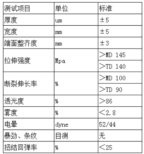 常規(guī)厚度:19μ,做印刷,糖果、牛肉粒包裝;23μ,做巧克力包裝。寬度可定制;
